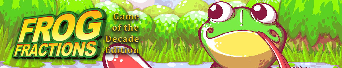 Frog Fractions was originally created to entertain Jim's circle of friends. It was released to the public accidentally on October 25th, 2012 and became a runaway viral hit, winning hearts and eventually reaching more than two million players. Eight years later, with the looming death of Flash as a game platform, Twinbeard decided to remaster Frog Fractions as a native executable so that it would remain playable for the foreseeable future.
